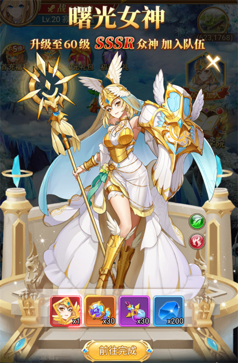 3、达到60级,领取SSSR级曙光女神。