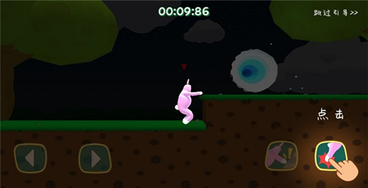1、在图中所示的按键操作中,按住左侧的移动按钮,即可控制兔子人前进或后退。
