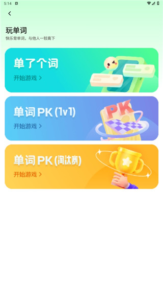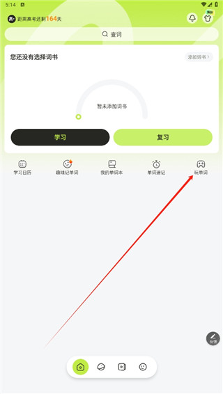 1、在软件中是可以一边玩一边学习的,点击首页中的玩单词选项
