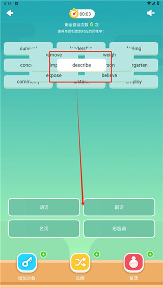 4、将单词推到对应的答案中就好了,所有的单词都选完游戏结束