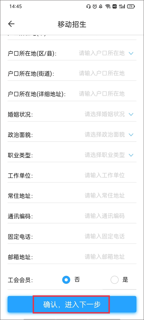 1、在app主界面点击“招生报名”或“移动招生”。