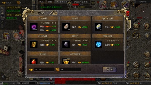 6、元宝商城和灵符商城限购商品,请务必购买,均为优质物品