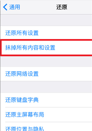 2、若已跳过该步骤,可在“设置”-“通用”-“还原”中选择“抹掉所有内容和设置”,重新开始设置。