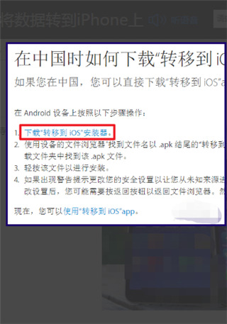 3、确保安卓设备系统为4.0以上版本,前往苹果官网下载并安装“转移到iOS”应用。