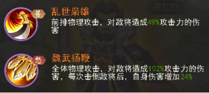 前排群体物理攻击,对多个敌将造成显著伤害。
