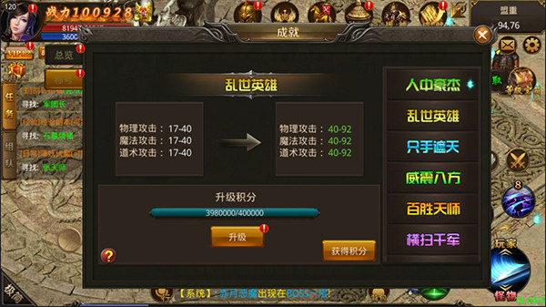 2、通过完成成就、参与夜战龙城活动或在神秘商店购买来提升成就称号。