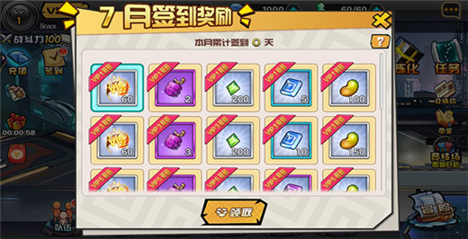 点击左上角签到,可以进行签到,可以领取大量奖励以及VIP经验。