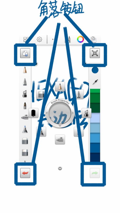 蓝框标识好像不明显,这次换红色,要注意的是,灰色环形及周围一圈笔刷都属于环形菜单。