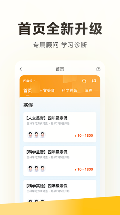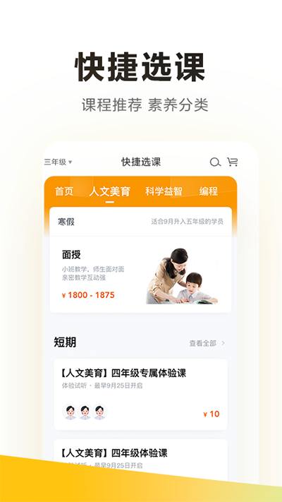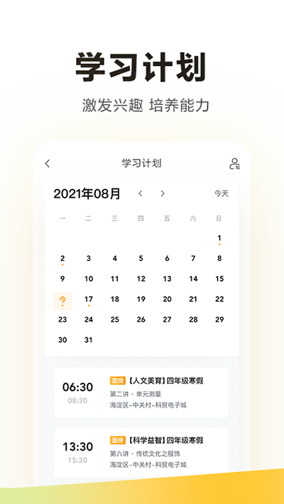 学而思培优app一款专为3-18岁孩子打造的教育类移动端学习软件,它里面有好多好多的课程,不管是语文、数学还是英语,什么年龄段的课程都有。爸爸妈妈只要用这个app,就能很简单地帮小朋友选好课、报好名,还能看到老师的详细介绍和每节课的安排。