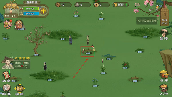 如何高效采集资源?1、以采集树枝为例,首先点击相应的树枝。
