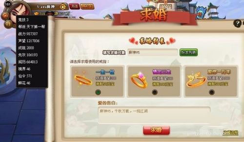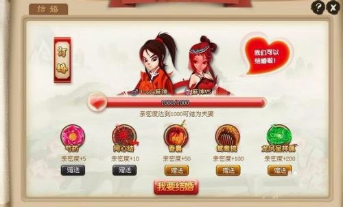 3、增进关系:求婚成功后,可前往月老处增加亲密度;