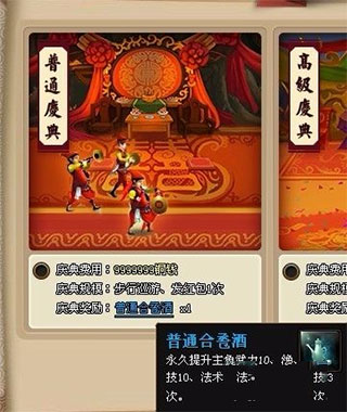 6、庆祝环节:婚礼包括酒宴、拜堂和仙界大游行等环节;