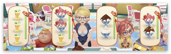 正如图中所示,只有先为顾客提供糖果,才能大胆地进行连连上菜操作,从而在游戏中取得更好的成绩。