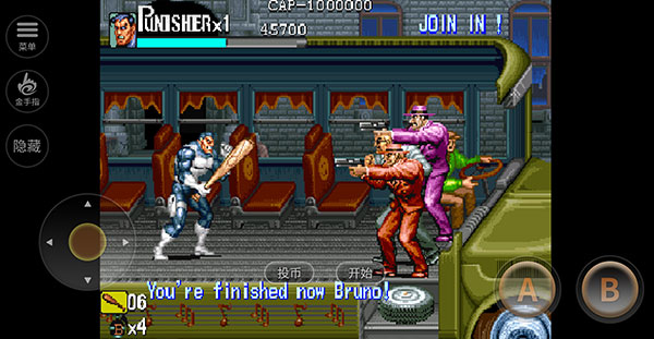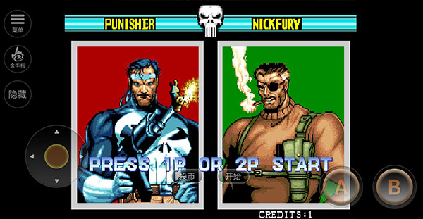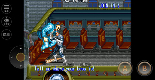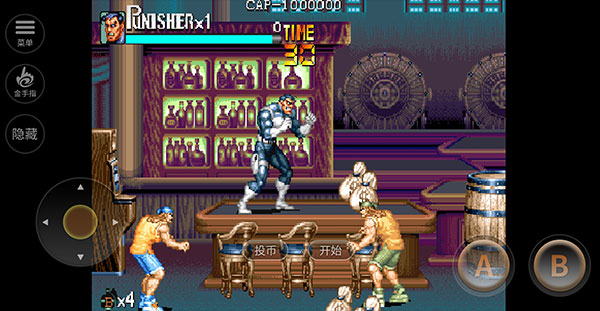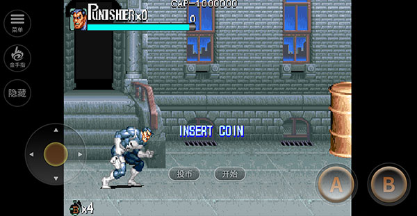 3、设置完成后,使用左下角的按钮控制角色移动,A键进行攻击,B键跳跃。了解操作后,点击“投币”开始游戏。