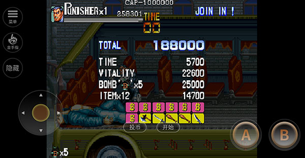 7、如果角色阵亡,游戏将进入医生抢救界面。在倒计时结束前点击“投币”和“开始”,即可复活并继续战斗。
