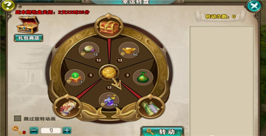 1、通过消耗“幸运钥匙”转动轮盘可获得道具奖励,幸运钥匙可以通过礼包商店的直购礼包获得,“幸运钥匙”为额外赠送的道具。