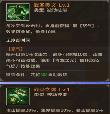 圣物每10级可提升1阶,进阶后额外提升本阵营所有武将百分比属性和速度。