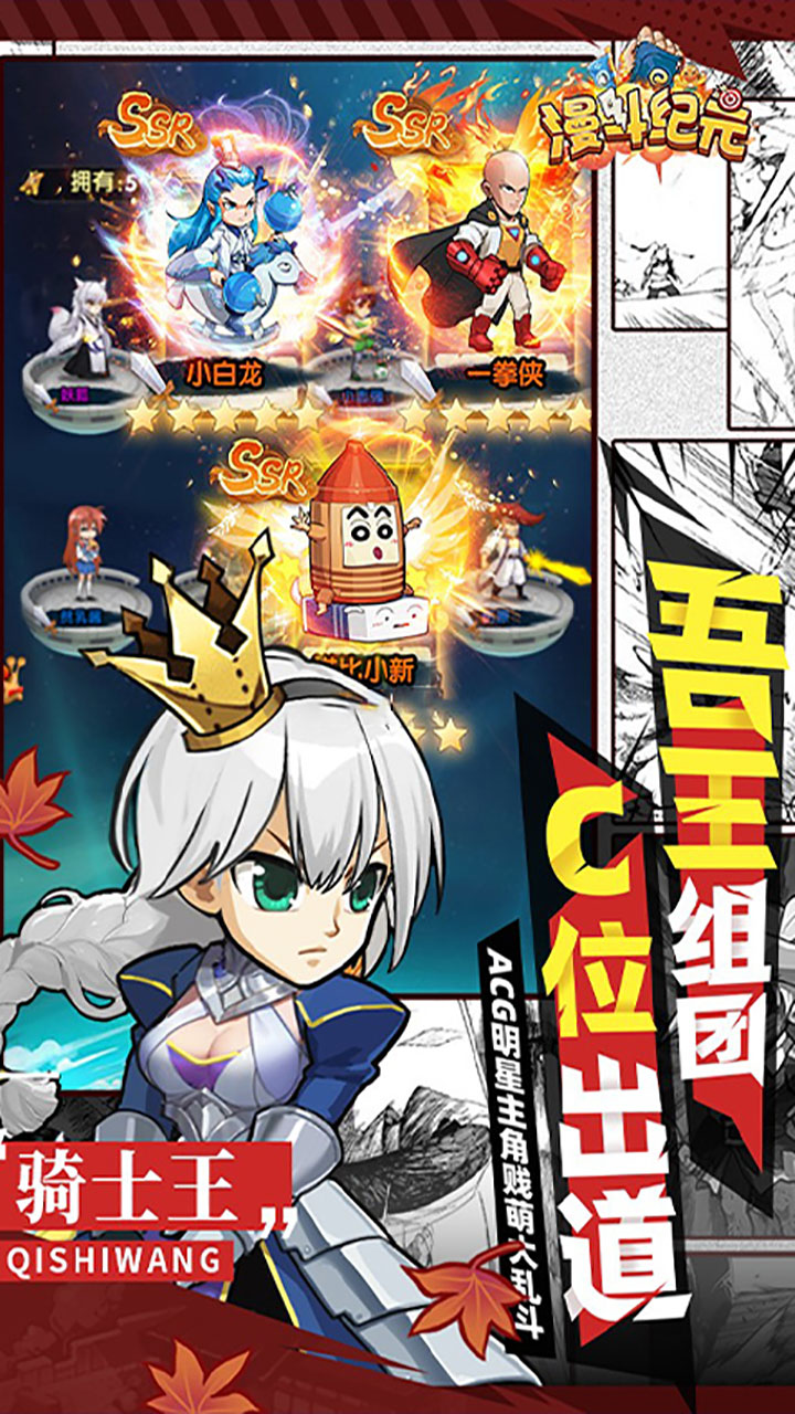漫斗纪元手游正版是一款二次元风格的角色扮演类手游,在这里你能够看到来自于不同动漫作品中的角色,如蜡笔小新,一拳超人,变身游戏王等,还有部分角色来自于历史和神话传说,并且每一位角色都有着不同的能力特点,我们需要做的就是根据角色的能力针对性的培,最大程度的发挥出每一位角色的实力。同时,游戏中还有着各种各样的玩法,主线任务,秘境探索,副本挑战等,各种玩法你可以随意选择体验。