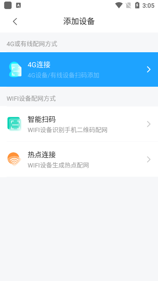 4、通过智能扫码或热点连接配置设备,按提示完成后续步骤;