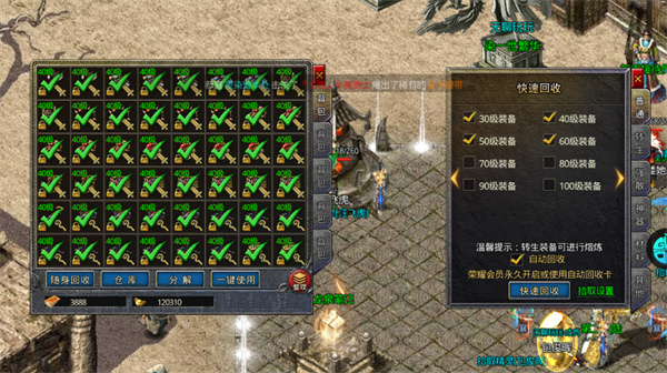 3、非VIP玩家可通过回城传送至比奇城的回收NPC处进行回收。