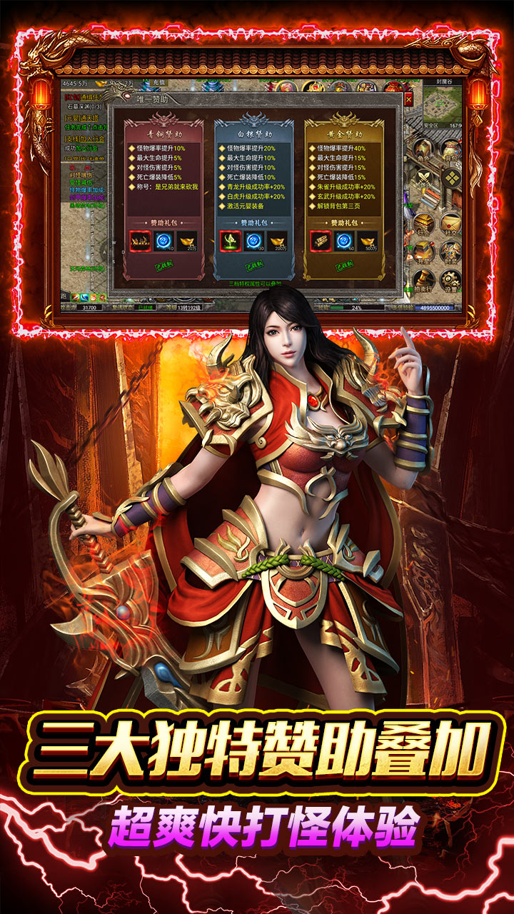 3、游戏采用了便捷的懒人玩法,实现秒级升级和轻松挂机,随时随地享受强势PK的快感。