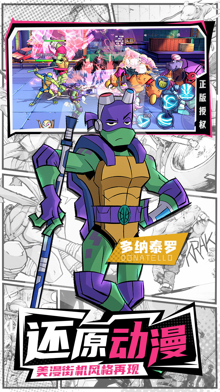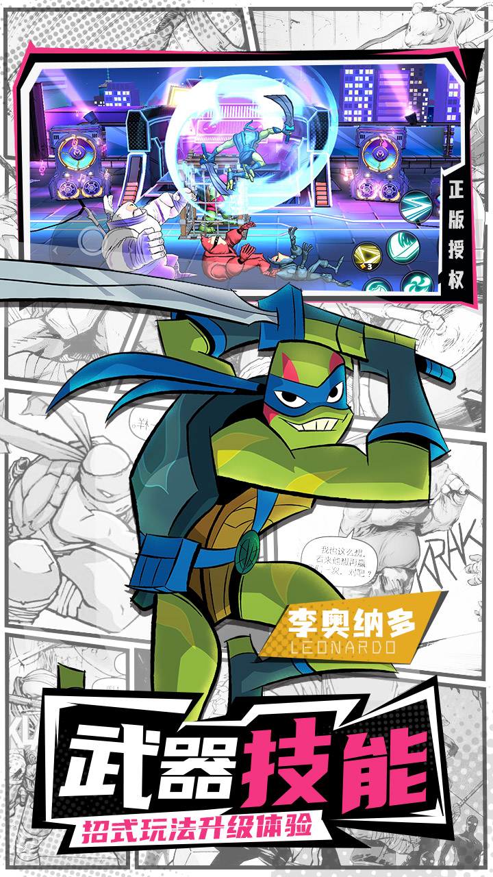4、职业自由搭配,忠实还原经典故事,提供非凡的忍者神龟体验。