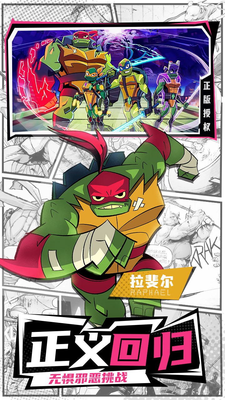 忍者龟归来手游官方正版是一款基于忍者神龟正版IP授权的经典街机风格的冒险格斗手游。这款游戏将你带入一个表面繁华、内里暗藏邪恶的城市世界。在这里,一个邪恶的联盟正秘密推进他们的变异计划,城市的安宁受到了前所未有的威胁。游戏不仅忠实重现了忍者神龟的经典形象和动作,还以卡通化且炫酷的角色设计、高清逼真的场景以及全新的剧情设置,配合打击感极强的音效,让玩家能够深入体验到街机游戏的无穷魅力,仿佛回到了那个街机时代。