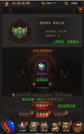 c.每周日休战,22:30结算奖励并通过邮件发放,所有玩家段位重置。