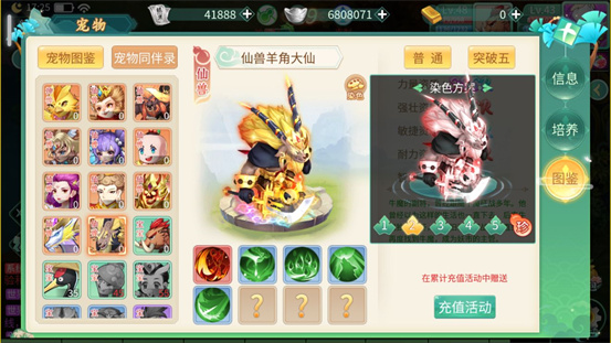 萌将春秋OL手游官方正版游戏里的宠物系统也特别好玩,你可以通过合成宠物,让它们变得更厉害,技能和属性都会提升哦,游戏里的宠物有很多种,像可爱的小宝宝、威风凛凛的神兽等等,每一只都有自己的特点和技能。你可以通过一些方法,比如洗炼啊、合宠啊,来培育出技能满满的神兽宠物,这样在战斗的时候,宠物就会成为你的好帮手,一起打败那些妖魔鬼怪,真的特别有意思!