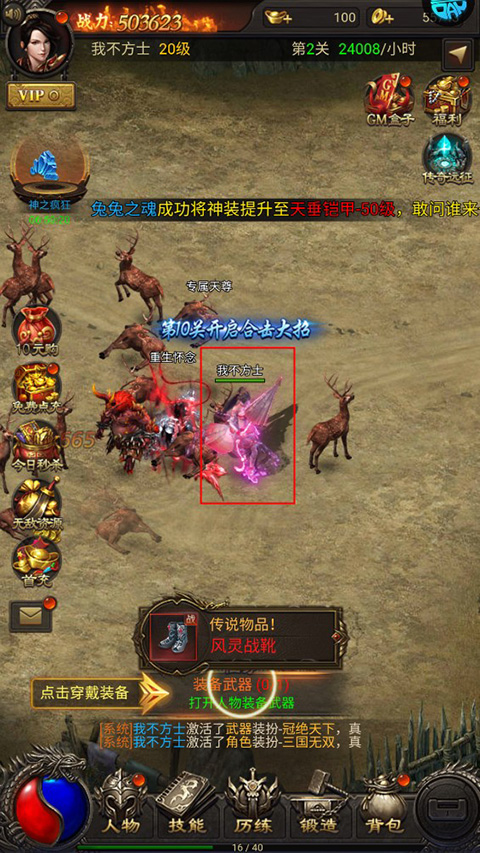 进入游戏后,玩家将获得一个极品角色,这将是征服沙城的有力帮手。游戏角色将自动战斗,升级,提高战力。