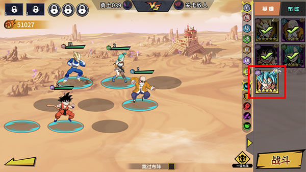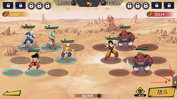 在战斗启动前,不要忘记先设定您的英雄阵容。请点击屏幕右下角配置即将参战的英雄。
