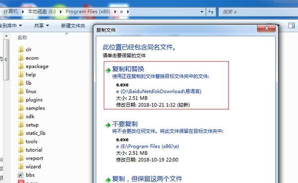 11、如下图所示,将数据包中的升级包都复制到软件安装目录下,复制并替换。