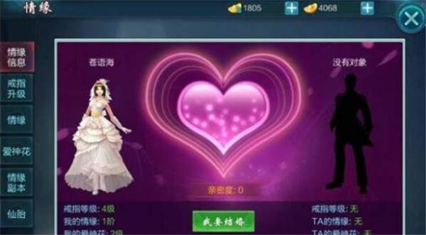 结婚后可通过情缘副本获得材料,培养升级爱神花。离婚后,培养系统锁定,属性保留。