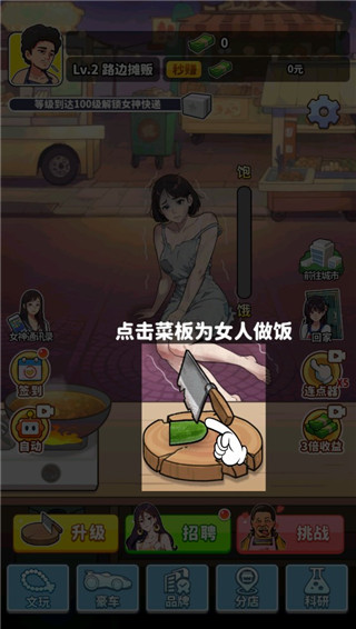 5、当你不断切菜时,就能将女人的饥饿值弄满,这样你就能收获第一位助理了