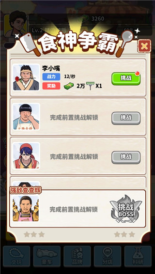 6、当厨艺精湛之后你就可以选择挑战食神,获得更高的收益!