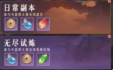 其中日常副本、无尽试炼、通天塔和每日挂机一定每天都要去刷,这几个副本是获取资源的主要来源,可以提供大量的金币的英雄经验。