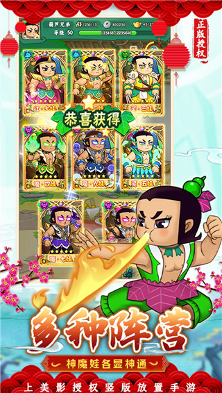 【正版授权 回忆重现】葫芦兄弟七子降妖0.1折版得到上海美术电影制片厂的官方授权,游戏精心还原了儿时的经典场景和人物,让你重温降妖的经典瞬间。