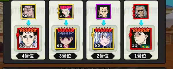 新手玩家在游戏初期最头疼的问题之一就是如何从酒馆中抽取的众多猎人中挑选出值得培养的角色,以及如何搭配出一支强大的战队。下面分享一些不同阶段的战斗阵容配置,希望能为大家提供一些启示。高级阵容(流星街国家队)