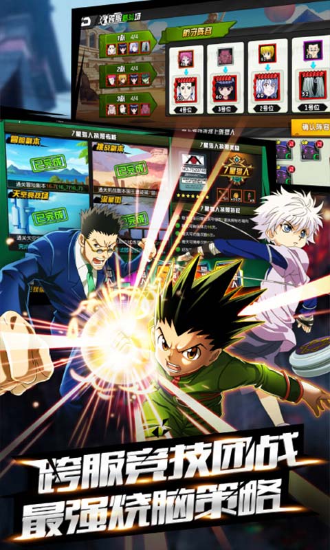 同时热血猎人手游中的卡牌设计源自同名动漫,包含了丰富的故事背景。玩家在游戏里将遵循特定的设定进行战斗。高清的游戏画质与动漫原作角色的忠实复刻,再现了原漫画中的经典场景,如鲸鱼岛、失美乐湿地、友客鑫市,以及枯枯戮山林和天空竞技场,等待玩家来探索和体验。