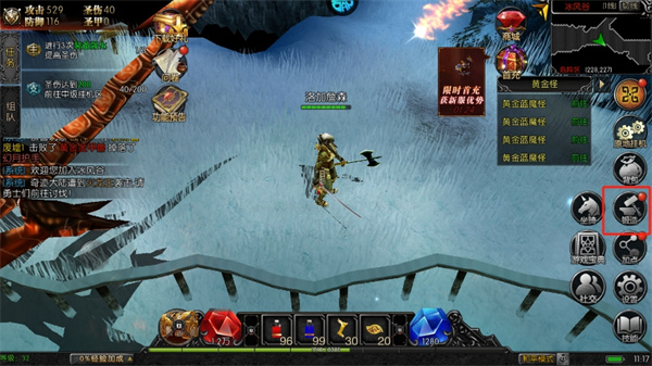 1、在游戏界面右侧找到并点击锻造图标,进入装备强化页面。