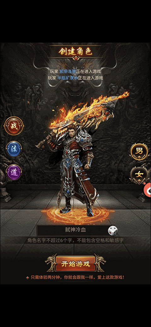 2、首先选择职业并设置昵称,然后点击“开始游戏”按钮进入;