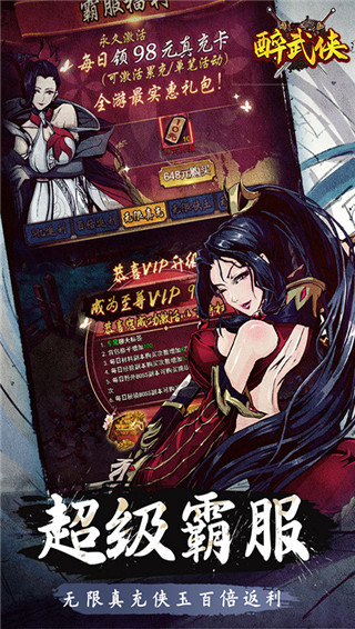 醉武侠0.1折版是一款集回合制挂机与精美绘制的武侠世界于一身的手机游戏。它巧妙地将经典的神话传说与创新性的游戏玩法结合,通过2D精细的画面和充满活力的角色设计,为玩家带来了一次别开生面的武侠探险之旅。