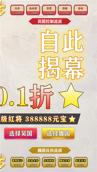 - 武将系统:熟悉的三国将领,各显神通,提供文武、连协、羁绊等多样化搭配,探索丰富的被动技能。- 缘分系统:集结武将、势力,乃至重现三国大事件,缘分相聚,胜率和爱率尽在掌握中。