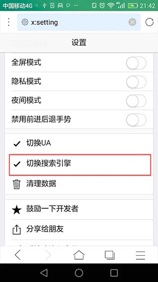 2、虽然默认搜索引擎设置为“百度”,但用户可自行更改。在设置菜单中可找到搜索引擎切换选项。