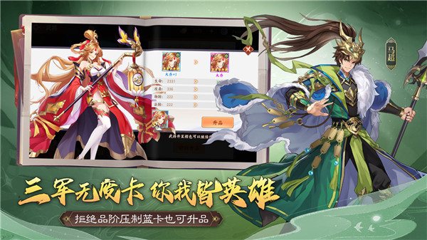 英雄爱三国无限金币钻石版是一款将策略、角色扮演以及战术对决完美结合的三国手游。在这个游戏的世界里,玩家将启程进行一场充满史诗色彩的三国冒险,与传奇的三国武将肩并肩战斗,深刻体验策略取胜的快感。其特色的1对1九宫格战斗模式,打破了传统TCG游戏的模式,无需广阔的战场,仅在九宫格的范围内即可享受轻松的对战体验,一局仅需1分钟,快速决定胜负。游戏采用了独特的“纯手绘国风薄涂+水墨描边”艺术风格,数百名三国英雄化身为魏、蜀、吴、群四大阵营,拥有专属技能的武将通过互制互克,实现策略上的胜利。