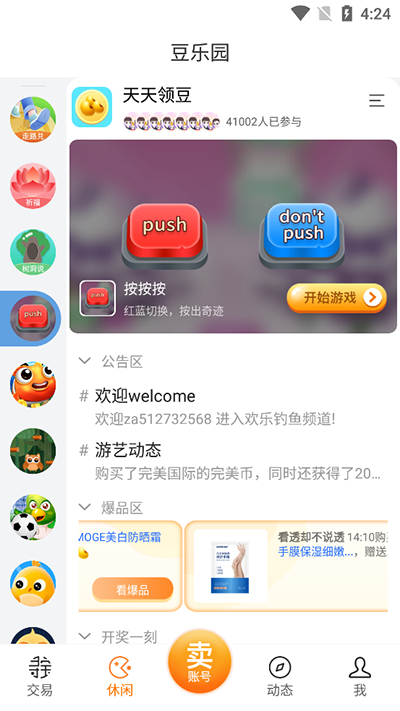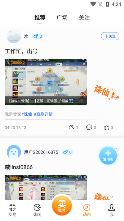 1、打开应用,导航至“我要卖”页面,选择“卖号”选项;