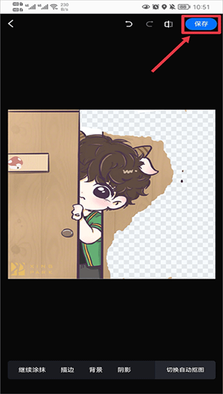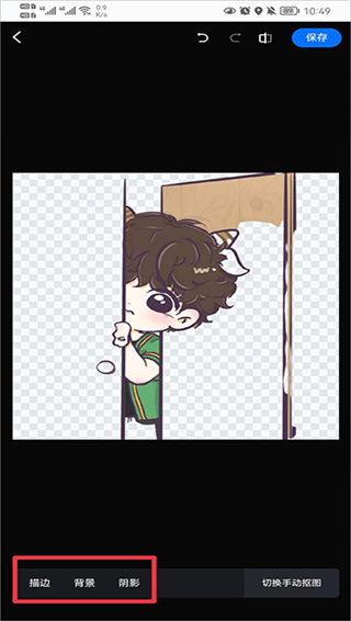 2、在相册中选择你要抠图的照片,进入后系统会自动为你抠图,然后你可以任意更换描边、背景、阴影的颜色