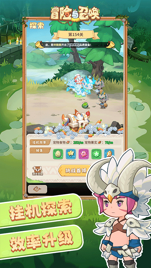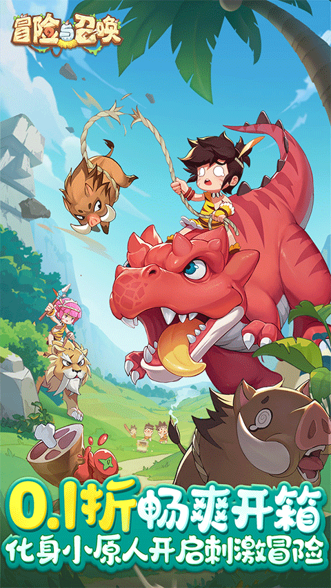 冒险与召唤0.1折版本是一款令人兴奋的石器时代背景休闲放置手游。在这个游戏中,玩家化身为勇敢的原始人,与史前时代的生物并肩作战,携手远古异兽,共同踏上一段充满冒险的石器时代旅程。游戏的精髓在于解锁宝箱,每一次开启都可能获得包括远古神装、强大技能乃至罕见的上古坐骑在内的神秘奖励,让玩家在提升实力的同时,享受到探索未知的快乐。