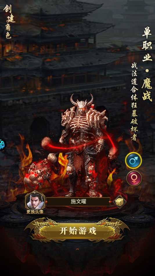 1、游戏伊始,选择一个你钟爱的职业,开启你的传奇之路;