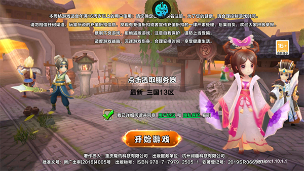 1、进入游戏后选择区服,然后点击开始畅玩游戏